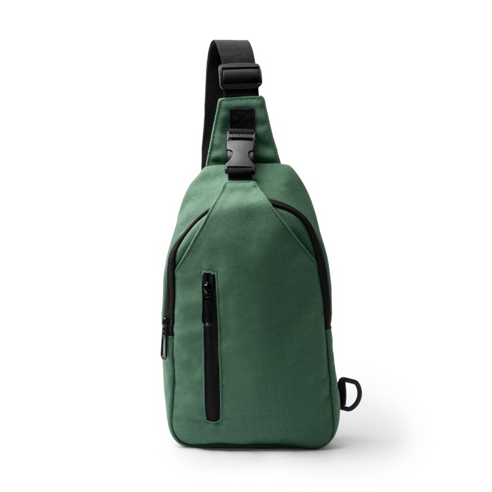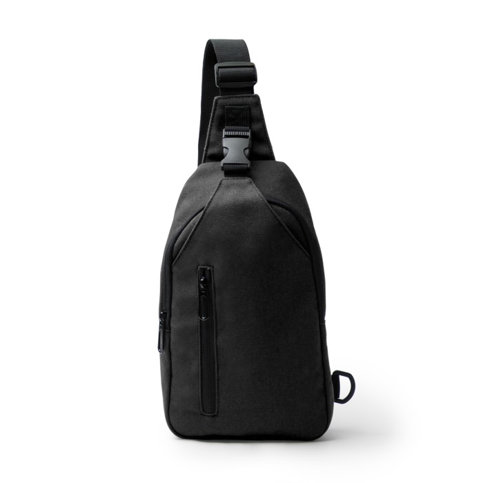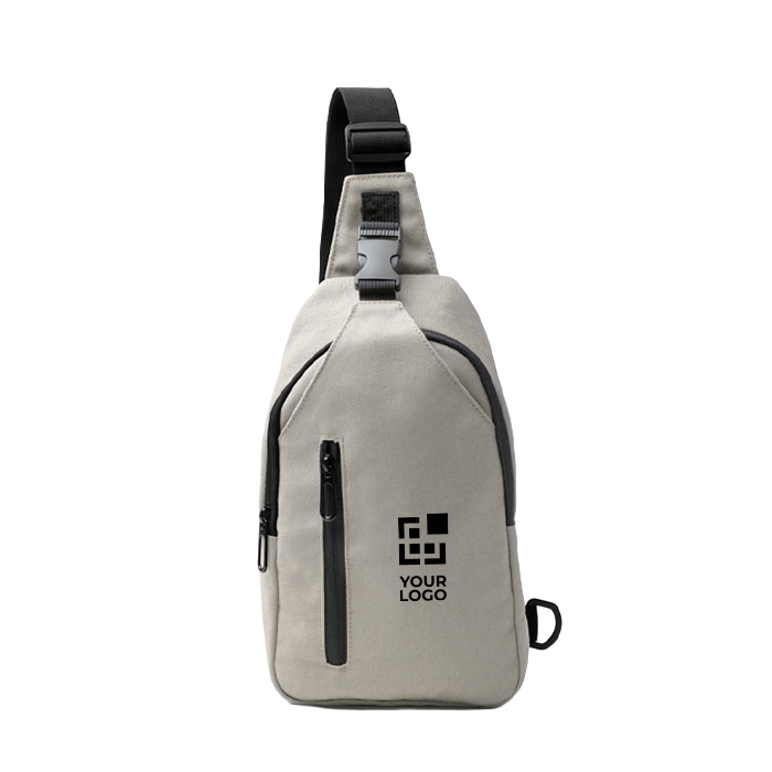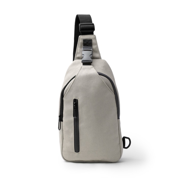 Crossbodytas van gerecycled katoenen canvas, gemaakt voor je dagelijkse leven onderweg. De verstelbare band met karabijnhaak en twee bevestigingspunten aan de uiteinden zorgt ervoor dat je ’m stabieler draagt. Het hoofdvak met ritssluiting helpt de inhoud veilig te houden, terwijl de twee buitenvakken accessoires gescheiden houden: één met rits en één met gesp. De gewatteerde achterkant zit prettiger tijdens langere trajecten. Handig voor welkomstacties, evenementen en uitrusting voor personeel.
