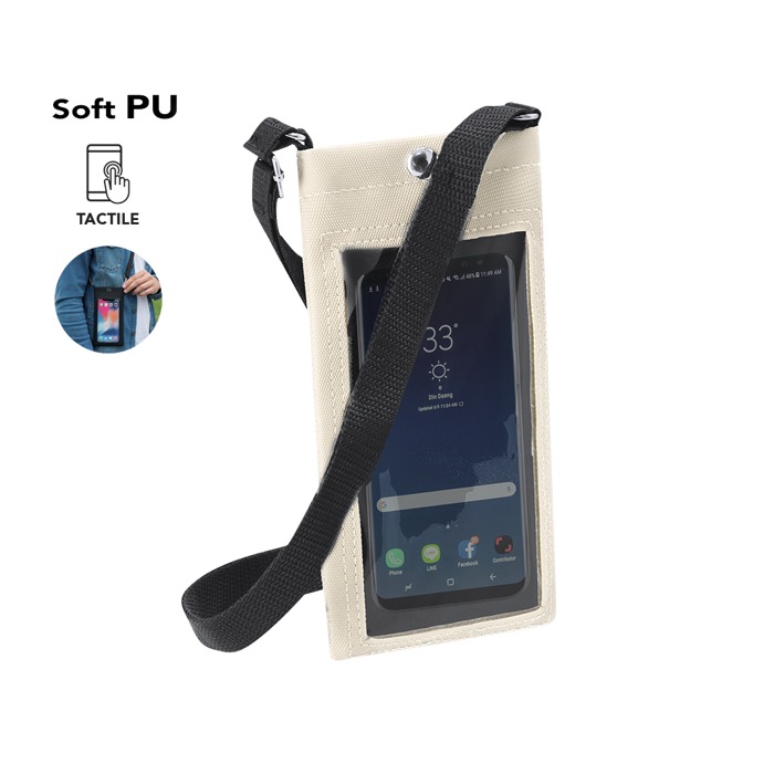 Opbergtasje van synthetisch leer met een transparant scherm waarmee je je telefoon met touchbediening kunt gebruiken zonder hem eruit te halen. Met een drukknoopsluiting blijft de inhoud beschermd en toch snel toegankelijk tijdens dagelijks gebruik. De verstelbare draagbanden laten je hem over de schouder of crossbody dragen en passen bij verschillende uitrustingen en behoeften. Het venster maakt het makkelijk om meldingen, kaarten of codes te checken zonder het toestel vast te pakken. Een praktische optie voor badges, evenementen en merkacties met bedrijfsbedrukking.