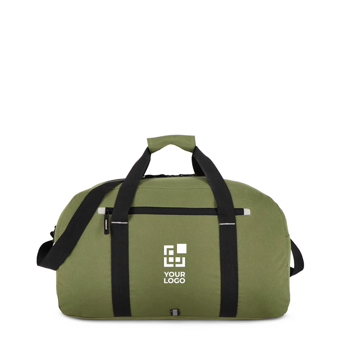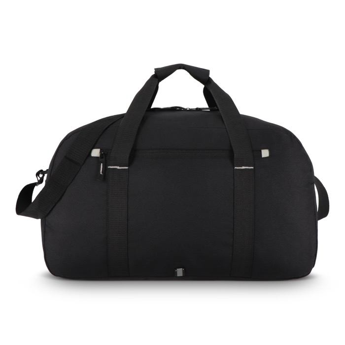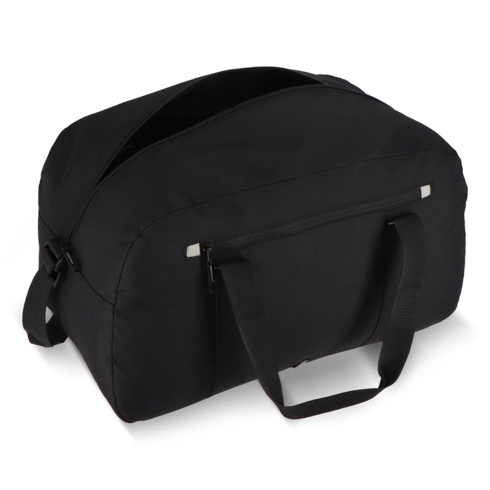 Sport- of reistas van gerecycled plastic met 600D-stof, gemaakt voor intensief gebruik. Met korte handgrepen en een lange verstelbare schouderband draag je hem in de hand of over de schouder, afhankelijk van de rit. Het reflecterende detail aan de voorkant verbetert de zichtbaarheid. In het voorvak met rits houd je documenten of accessoires binnen handbereik. Grijze contrasten geven een strakke, moderne afwerking. Een praktische keuze voor teams, bedrijfsreizen of merkacties.