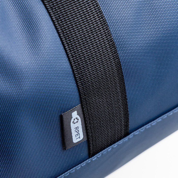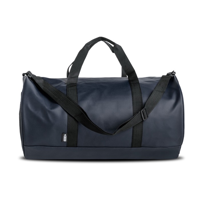 Sport- of weekendtas van gerecycled plastic met een coating van kunstleer, gemaakt voor veelvuldig gebruik en eenvoudig onderhoud. Je hebt een hoofdvak met sluiting om kleding en accessoires netjes mee te nemen. Er is ook een voorvak en zijvakken, zodat je kleine spullen kunt scheiden en bij de hand houdt. Met handgrepen en een verstelbare schouderriem beweeg je comfortabel. Praktisch voor HR-acties, interne toernooien of eventmerchandising.