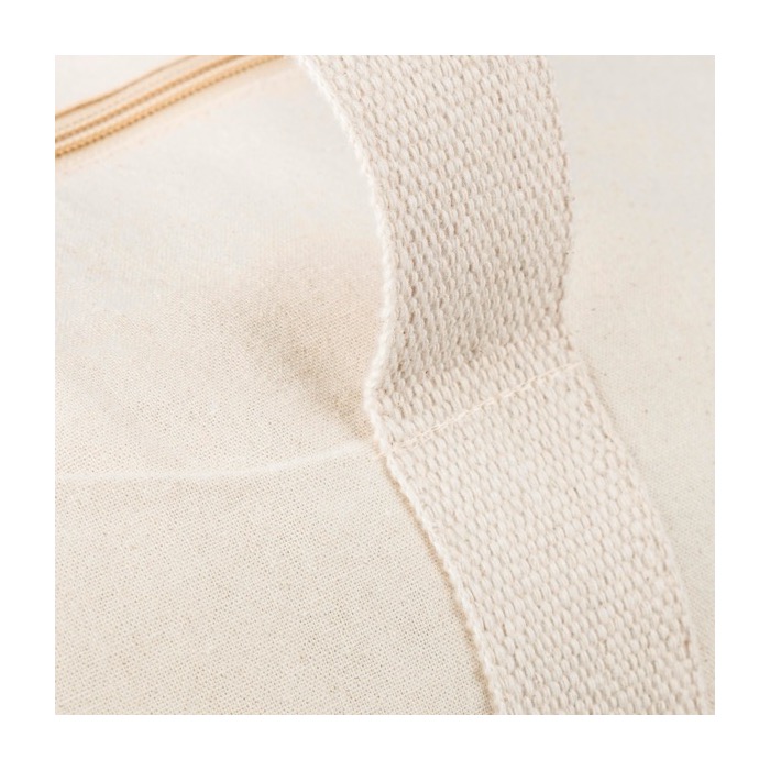 Sporttas van naturel katoen van 180 g/m² met rits om de inhoud beter te beschermen onderweg. Met een bodemvouw voor extra inhoud en meer stabiliteit wanneer je hem neerzet. Inclusief lange katoenen hengsels van 60 cm lang en 5 cm breed, bedoeld om comfortabel over je schouder te dragen, ook met lading. Met Oeko-Tex®-label (Oeko-Tex: certificaat voor controle van stoffen in textiel) om textielstandaarden makkelijk te communiceren. Een praktische optie voor merkacties, sportevenementen of intern gebruik op kantoor.