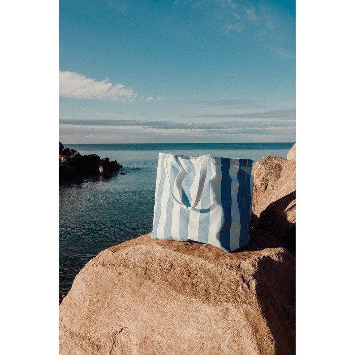 - Canvas strandtas met tweekleurige strepen en grote inhoud