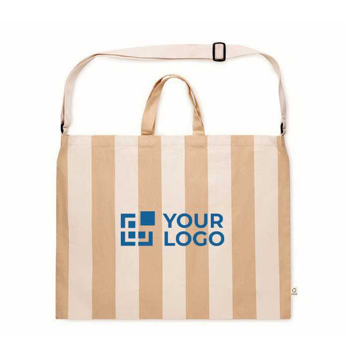 Strandtas met verticale strepen, hengsels en verstelbare schouderband