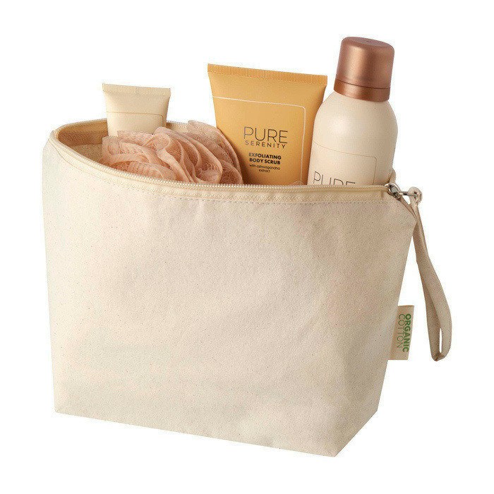 Grote toilettas van biologisch katoen met rits en polsband 3L