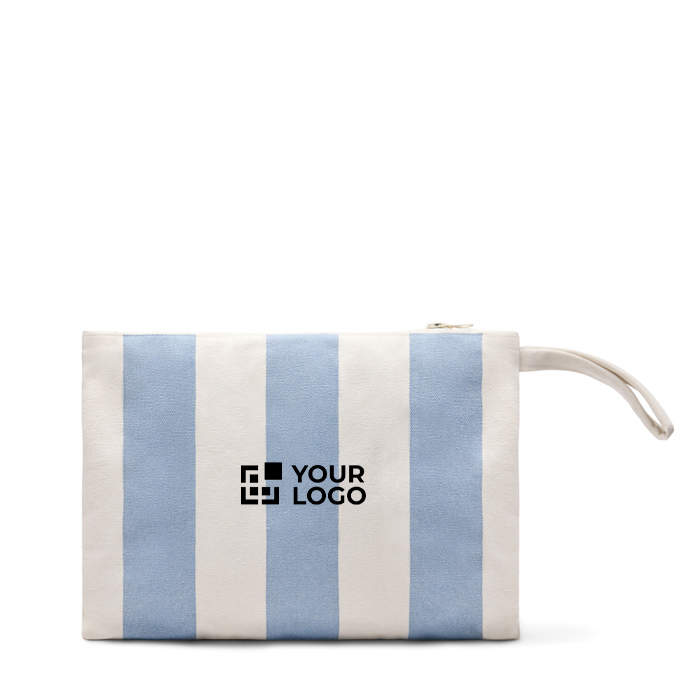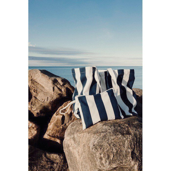 Organizer tas van canvas van 390 g/m² met een tweekleurige strepenprint. Bedoeld om accessoires en spullen netjes geordend te houden. Met ritssluiting voor veilige opberging en een handig handvat dat het meenemen elke dag of onderweg makkelijker maakt. Gemaakt van 69% gerecycled katoen en 29% gerecycled polyester. Met GRS-certificering (Global Recycled Standard), die de toeleveringsketen van gerecyclede materialen verifieert. Handig als relatiegeschenk bij events, bedrijfsreizen of merkacties.