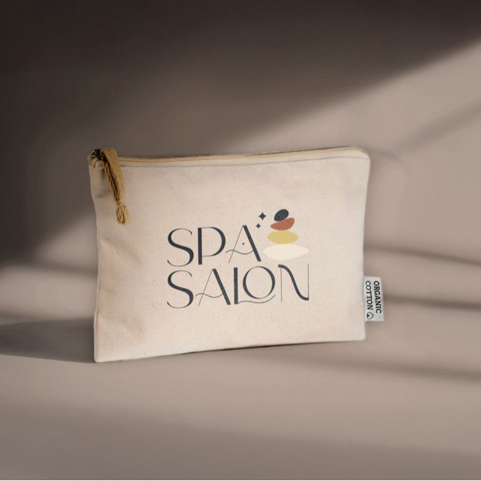 Toilettasje van biologisch katoen, met een gewicht van 180 g/m², en elegant minimalistisch ontwerp. Hiermee geef je een natuurlijke uitstraling aan je merk.