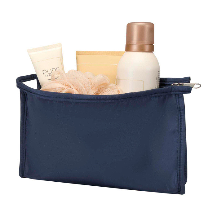 Toilettas van gerecycled polyester met GRS-certificaat (Global Recycled Standard). Ontworpen om reisverpakkingen toiletartikelen en kleine accessoires mee te nemen zonder veel ruimte in te nemen. Het compacte ontwerp helpt je het belangrijkste te organiseren tijdens verplaatsingen, beurzen of dagen buiten kantoor. De stof is stevig voor dagelijks gebruik. Je neemt hem makkelijk mee in een rugzak of koffer. Een praktische optie voor welkomstacties, bedrijfsevents of relatiegeschenken die vaak worden gebruikt.
