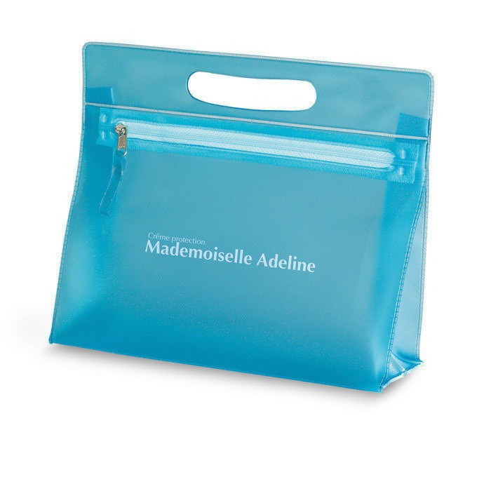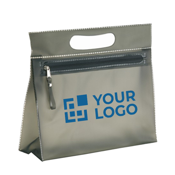 Laat deze budgetvriendelijke toilettassen bedrukken als handig relatiegeschenk voor de reisbranche! Hij is gemaakt van frosted PVC en heeft een praktische rits. Met leuk design!
