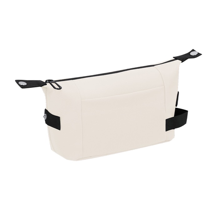Toilettas van kunstleer met een zachte afwerking, bedoeld voor dagelijks gebruik tijdens reizen en werkverplaatsingen. Het hoofdvak heeft een ritssluiting met een zwarte metalen ritsrunner voor makkelijk openen. De binnenkant is zwart gevoerd en heeft een binnenvak om kleine accessoires, kabels of toiletartikelen te organiseren. De zijhandgreep maakt dragen eenvoudig en zorgt voor snelle toegang in koffers of rugzakken. Een praktische optie voor welkomstacties, events en bedrijfsmerchandising.