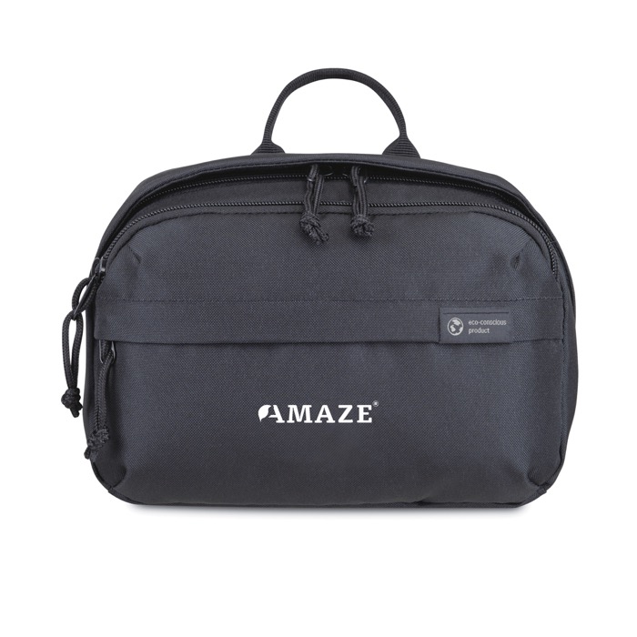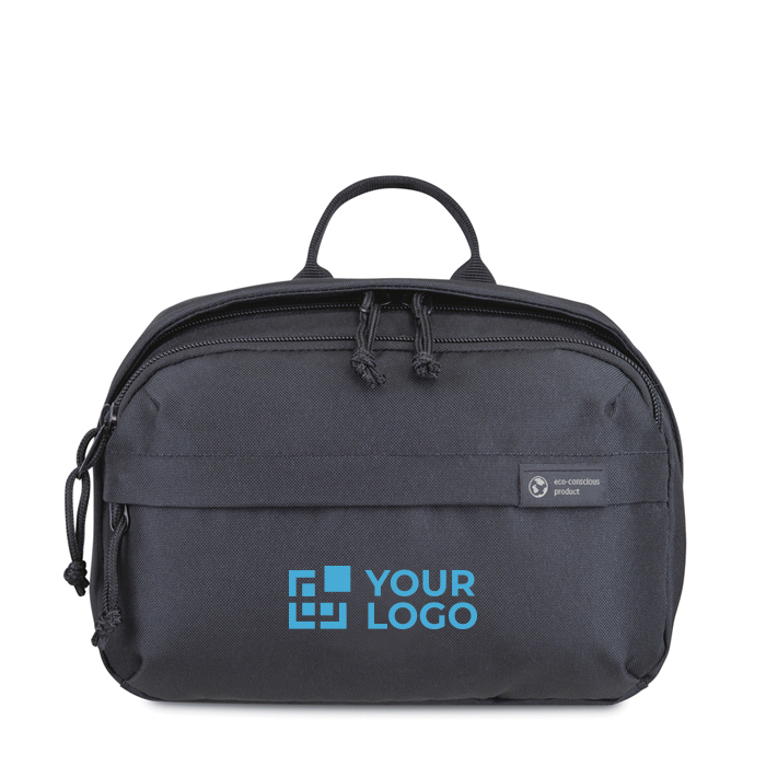 Een moderne en duurzame update van je favoriete toilettas, gemaakt van gerecycled stof en webbing van plastic flessen. Voorvakken met rits voor het opbergen van reisbenodigdheden. Groot hoofdcompartiment met rits en binnenvakken om je toiletartikelen georganiseerd te houden. Handgreep bovenop voor eenvoudig dragen. Beschikbaar aan beide zijden van de Atlantische Oceaan. Dit item wordt in de VS en Canada ook aangeboden door Gemline.