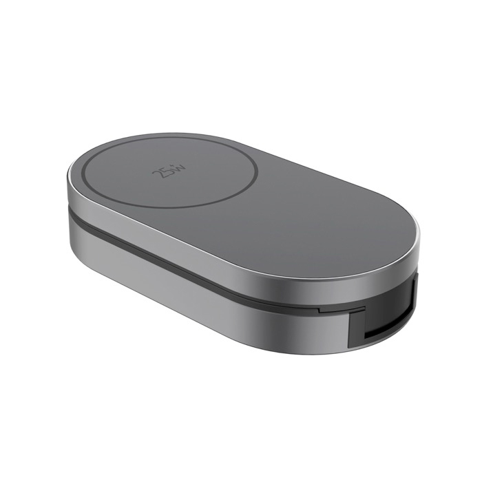 Compacte, opvouwbare ecologische 3-in-1 oplader met USB-C-ingang 25W