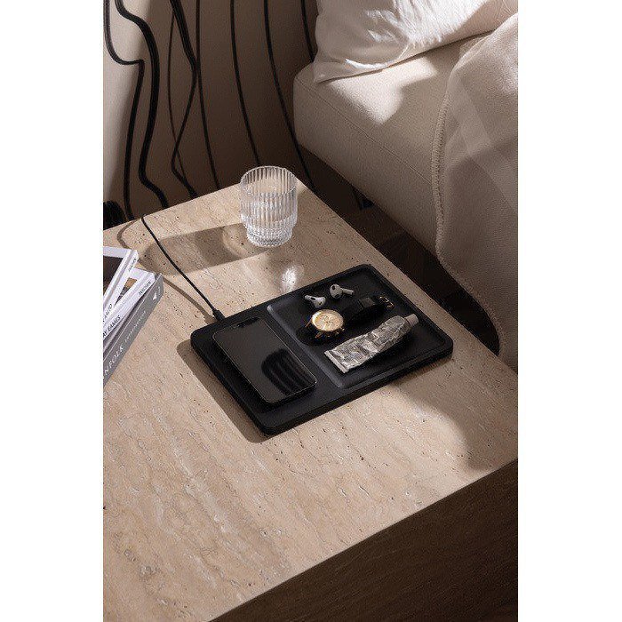 Een praktische en dunne bureau‑oplader – perfect voor het moderne huis of kantoor. Het vlak is voorzien van een geïntegreerde draadloze oplaadpad voor je telefoon. Om op te laden sluit je het plateau eenvoudig aan met de meegeleverde USB‑C‑naar‑USB‑C-kabel (1,2 m). Zodra het is aangesloten, leg je je telefoon op de pad om het opladen te starten. Het vlak dient ook als handig oppervlak om dagelijkse essentials zoals een koptelefoon, bril of sleutels op te bergen. Een eenvoudige en functionele oplossing – ideaal voor bureaus, halmeubels of nachtkastjes.Type-C‑ingang: 9 V 2 A (min.)Draadloze uitgang: 5 W / 7,5 W / 10 W / 15 W (max.)Gecertificeerd volgens de RCS‑norm (Recycled Claim Standard), waarmee wordt gegarandeerd dat de volledige toeleveringsketen van gerecyclede materialen gecertificeerd is. Dit product bevat 47% RCS-gecertificeerd gerecycled ABS en 4% RCS-gecertificeerd gerecycled polyester.