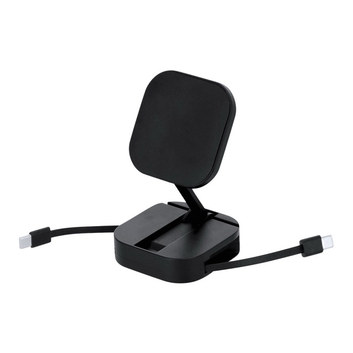 2-in-1 oplaadkabel van gerecycled kunststof met magnetische standaard van 60W. Je laadt je smartphone op twee manieren: op de magnetische standaard of via de kabel. Inclusief inklapbare standaard met verstelbare positie voor gebruik op je bureau of tijdens meetings. De uitschuifbare kabel van 80cm helpt je tafel netjes te houden en schuift alleen uit wanneer je hem nodig hebt. Met USB-C-aansluiting ondersteunt hij opladen en dataoverdracht op compatibele apparaten. Handig voor brandingacties bij events, op kantoor of bij het welkom heten van medewerkers.