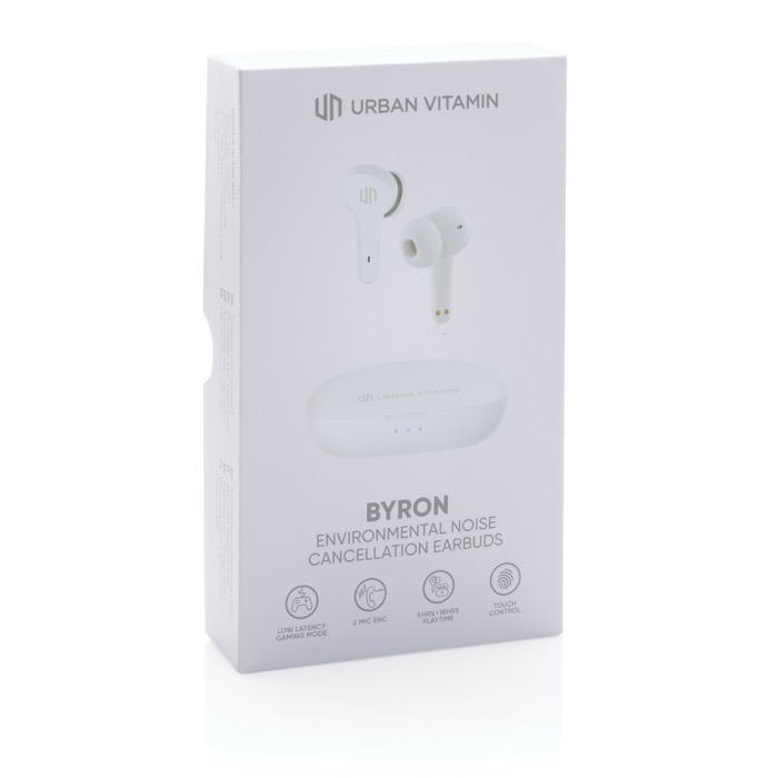 Ga echt draadloos met deze compacte maar krachtige oordopjes. De oordopjes worden geleverd met een gamemodus met lage latentie (65 MS) om de geluidsvertraging tussen uw scherm en de audio bij het spelen van games te minimaliseren. Dankzij omgevingsruisonderdrukking (ENC) zijn je telefoongesprekken kristalhelder door omgevingsgeluid tijdens je gesprek weg te filteren. Geen vragen meer om te herhalen wat je net hebt gezegd. Dankzij de touch control functie hoef je alleen maar op het oordopje te tikken om te antwoorden. De comfortabele oordopjes hebben tot 5 uur luistertijd en de oplaadcassette in zakformaat biedt tot 18 uur afspeeltijd. De IPX 4-classificatie maakt de oordopjes weer- en zweetbestendig, dus u hoeft zich geen zorgen te maken om ze mee naar buiten te nemen. Urban Vitamin items zijn gemaakt zonder PVC en verpakt in plastic gereduceerde verpakking.