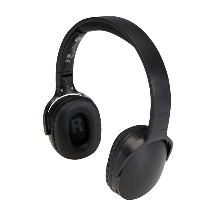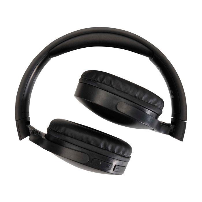 Draadloze koptelefoon van gerecycled kunststof met opvouwbare hoofdband, zodat je hem makkelijk kan meenemen en opbergen. De Bluetooth® 5.3-verbinding zorgt voor een stabiele ervaring voor muziek en gesprekken, met ingebouwde microfoon en goed bereikbare knoppen om volume en afspelen te regelen. De batterij gaat tot 10 uur mee en laadt in ongeveer 1,5 tot 2 uur op. Zo hoef je minder lang te wachten tussen werkdagen. Inclusief type-A-naar-type-C oplaadkabel van 30 cm. Aanbevolen voor merkacties op events, onboarding of thuiswerken.