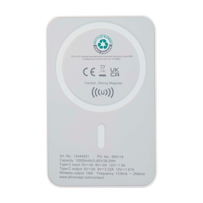 Magnetische draadloze powerbank van gerecycled plastic 10.000 mAh