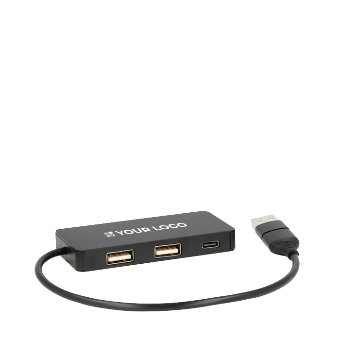 Hub van gerecycled aluminium en gerecycled kunststof om de connectiviteit op je werkplek uit te breiden. Met USB- en USB-C-ingang met voeding 5V/1A, bedoeld voor een stabiele verbinding met laptops en werkstations. Biedt drie uitgangen: twee USB-A en één USB-C met 5V/500mA, geschikt voor randapparatuur zoals muizen, toetsenborden, geheugensticks of ontvangers. Het compacte formaat houdt je bureau netjes en maakt dagelijks gebruik makkelijk op kantoor, beurzen of bij zakelijke welkomstacties.