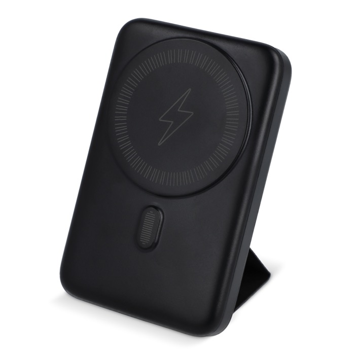 Draadloze powerbank. Inclusief geïntegreerde standaard, perfect voor op het bureau. Zorg dat je team hun apparaten opgeladen en klaar voor gebruik heeft.