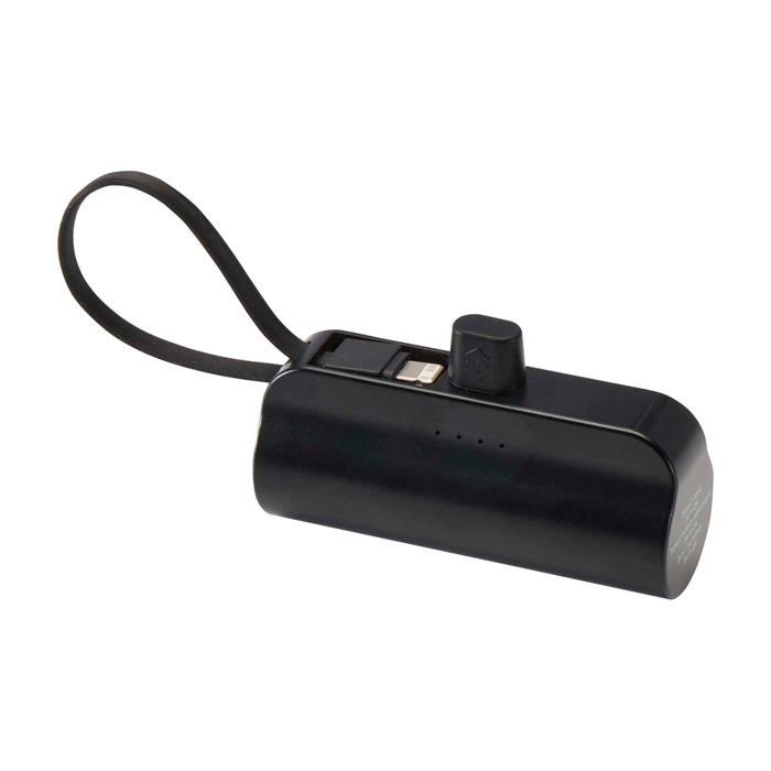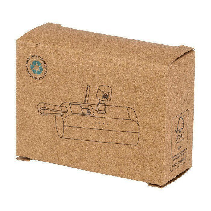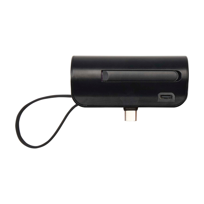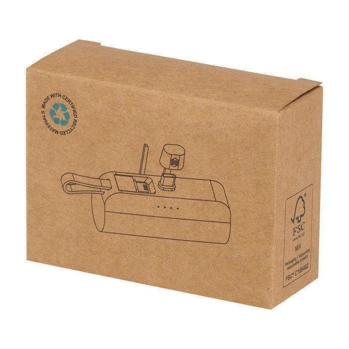 De Alnair powerbank is een compact en praktisch oplaadaccessoire gemaakt van gerecycled plastic. Hij is voorzien van een vaste Type-C docking connector, een ingebouwde opvouwbare telefoonstandaard en een geïntegreerde 2-in-1 kabel met Lightning-/micro-USB-connector. Met een Type-C-ingang-/uitgangpoort voor extra flexibiliteit, is het ideaal om je telefoon opgeladen en ondersteund te houden, waar je ook gaat.