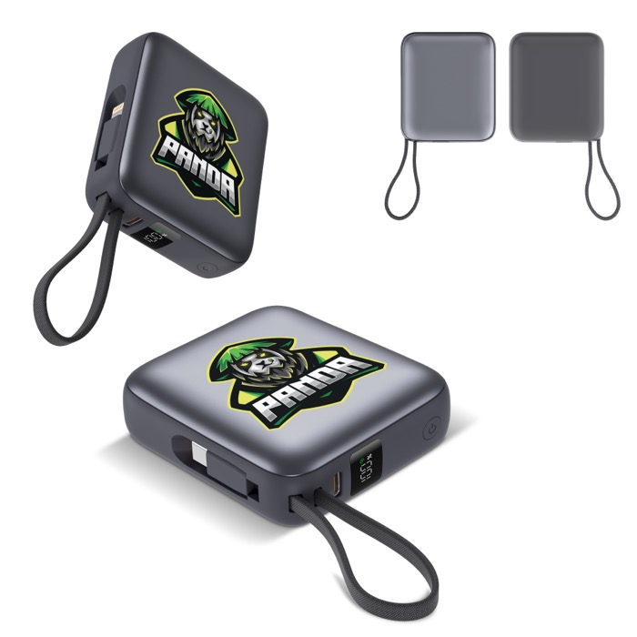 Powerbank van kunststof met een compact ontwerp voor snelle laadbeurten in het dagelijks gebruik. Hij heeft een geïntegreerde USB-C-kabel om aan te sluiten en op te laden zonder extra accessoires, en biedt snelladen van 22,5 W met stroomtoevoer (power delivery). De capaciteit van 10000mAh helpt om telefoons en accessoires opgeladen te houden tijdens lange dagen. Het vloeibare-kristalscherm toont het batterijniveau in real time, zodat je laadbeurten kunt plannen. Geschikt voor merkacties op beurzen, evenementen en voor intern gebruik.