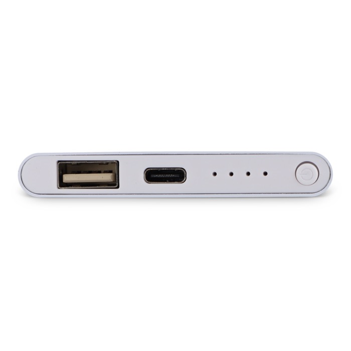 Zorg voor onbeperkte connectiviteit bij werknemers en klanten met deze elegante draagbare oplader van 4.000 mAh, compact en licht, met USB-A en USB-C uitgangen.