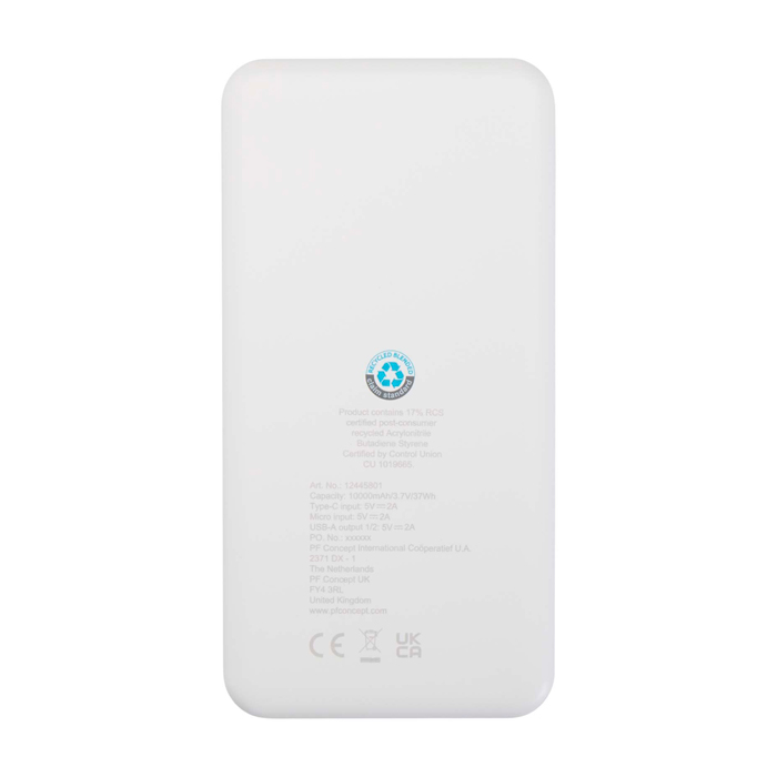Powerbank van gerecycled plastic met LED-laadindicator 10.000 mAh