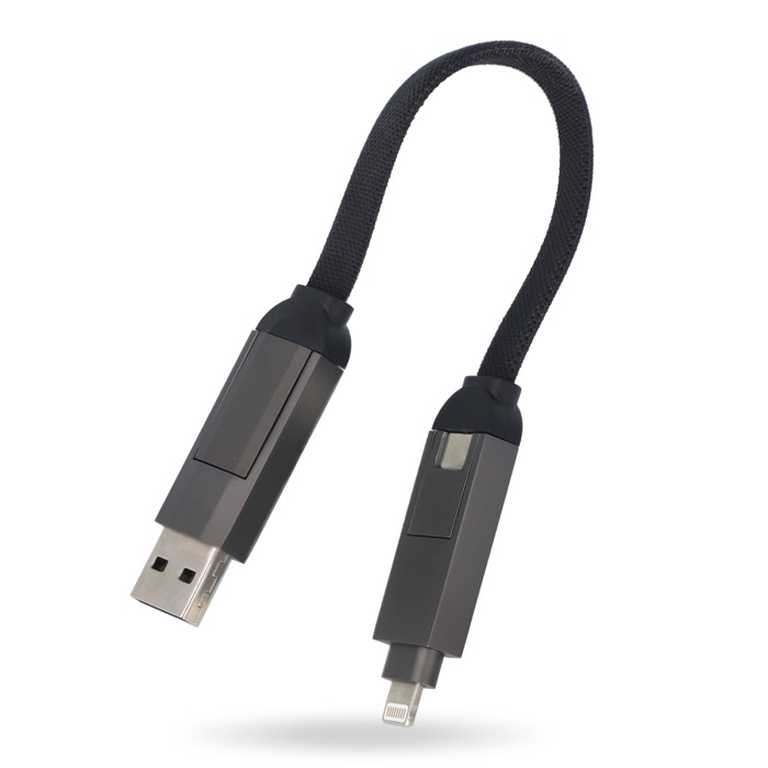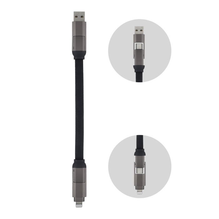 Deze multifunctionele kabel is de ultieme reisgenoot, met USB-A en USB-C ingangen met USB-C en Lightning uitgangen voor eindeloze compatibiliteit. Hij ondersteunt Power Delivery (PD) en Quick Charge (QC). Het nylon gevlochten materiaal garandeert een lange levensduur, terwijl de magnetische sluiting het netjes georganiseerd houdt. Perfect voor on-the-go gebruik.