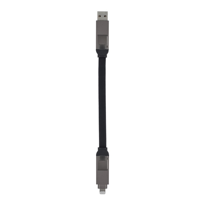 Optimaliseer je laden met deze kabel met USB-A en USB-C ingangen, USB-C en Lightning uitgangen, fast charging. Met gevlochten nylon en magnetische sluiting.