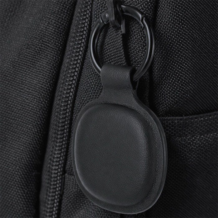 Slimme tracker van synthetisch leer met een strak design voor aan je sleutels, rugzak of bagage. Hij heeft een systeem met dubbele verbinding, compatibel met Apple Find My en Android Find Hub, zodat je je spullen in realtime snel en precies via je telefoon kunt volgen. Met een metalen ring in zwart chroom voor een veilige en onopvallende bevestiging. Inclusief knoopcelbatterij, zodat je meteen kunt starten. Handig voor welkomstacties, events of bedrijfsgeschenken met logo.