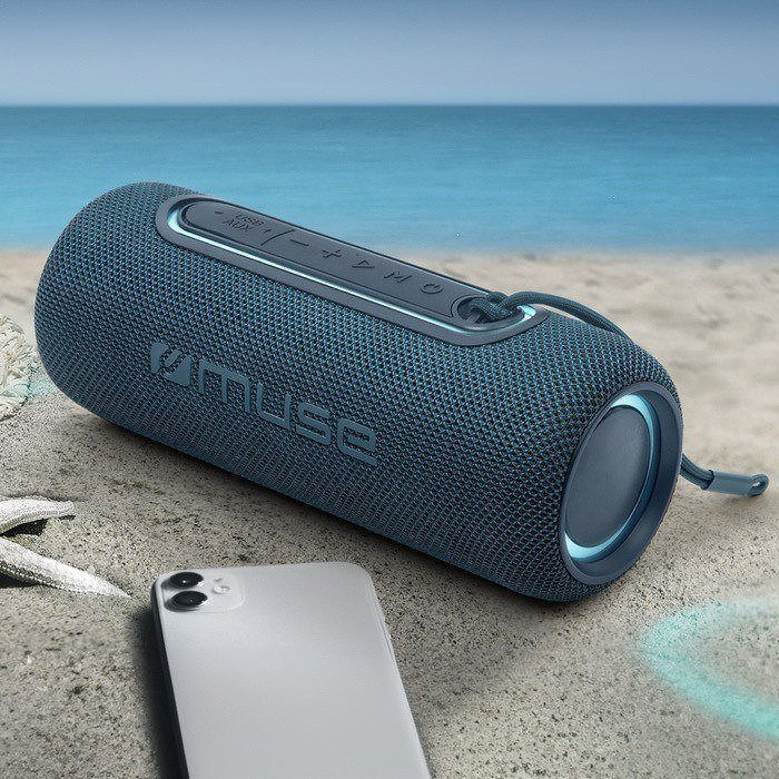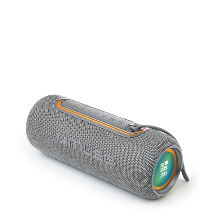 Stoere waterbestendige (IPX5) draadloze speaker met LED details, om zowel binnen als buiten van muziek te genieten. De speaker biedt een kristalhelder geluid met een maximum vermogen van 20W. De batterij heeft een grote capaciteit van 3000mAh en kan snel worden geladen met de USB-C aansluiting. Voorzien van handsfree functie om zo eenvoudig een telefoongesprek te voeren.