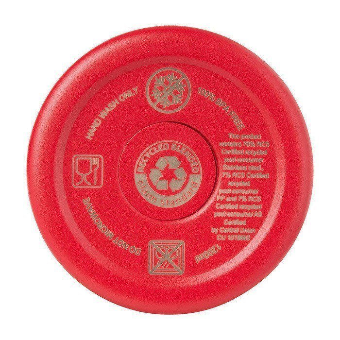 RCS gecertificeerde, dubbelwandige koperen vacuümgeïsoleerde beker, gemaakt van 91% post-consumer gerecycled roestvrij staal dat drankjes minstens 24 uur koud houdt. Met een Tritan rietje en een schuiffunctie voor het deksel om morsen te voorkomen. Het 100% gerecyclede plastic druk-draaideksel houdt het rietje stevig op zijn plaats en kan eenvoudig worden gedraaid om de drinkopening te openen. Duurzame poedercoating aan de buitenkant. Inhoud: 1200 ml. Alleen handwas.