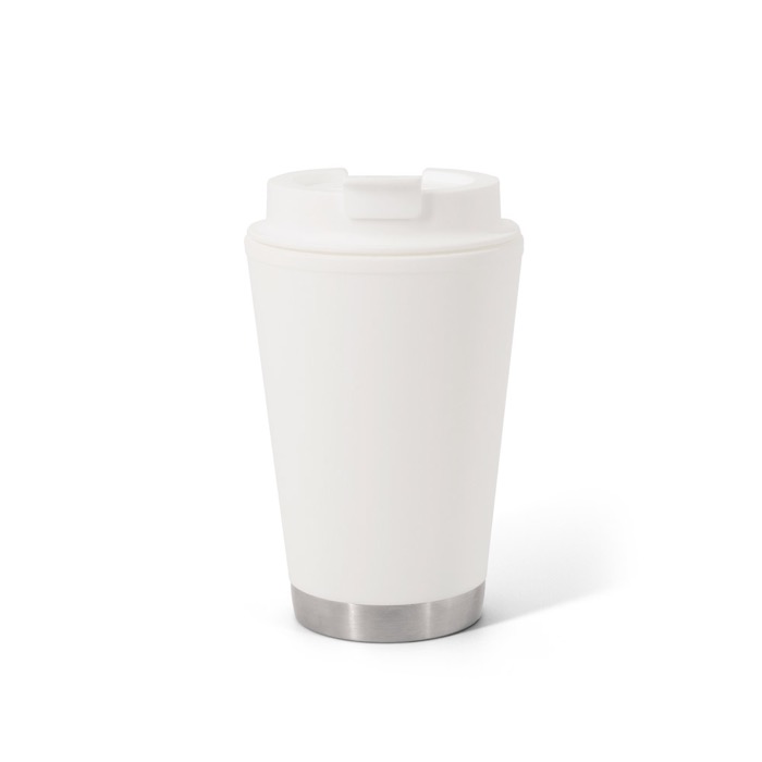 Reisbeker van kunststof met dubbele wand en anti-leksysteem, bedoeld om drankjes dagelijks mee te nemen zonder morsen. Het klapdeksel helpt de drank te beschermen tijdens het vervoer en geeft u snel toegang tot de inhoud wanneer u die nodig heeft. De dubbele wand helpt de temperatuur langer vast te houden en zorgt voor een betere grip. Met een inhoud van 410ml is hij handig voor koffie, thee of koude dranken op kantoor, tijdens evenementen of in zakelijke welkomstpakketten.