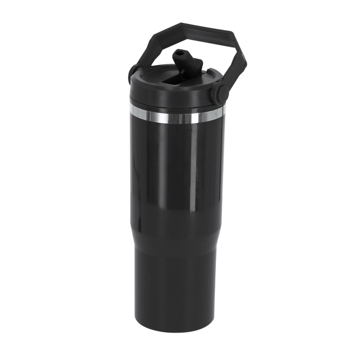 Thermobeker van kunststof met dubbele wand en een inhoud van 900 ml, bedoeld voor dagelijks gebruik op kantoor en onderweg. Met een rietje om makkelijk te drinken en een deksel met hermetische afdichting die helpt morsen te voorkomen. Met draaghandvat zodat je hem eenvoudiger meeneemt. Houdt warmte tot 2 uur vast en kou tot 4 uur, afhankelijk van de gebruiksomstandigheden. BPA-vrij en met Food Grade-certificering voor contact met voedingsmiddelen. Een praktische keuze voor interne acties, events en zakelijke geschenken met logo.