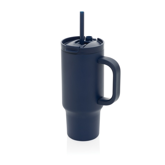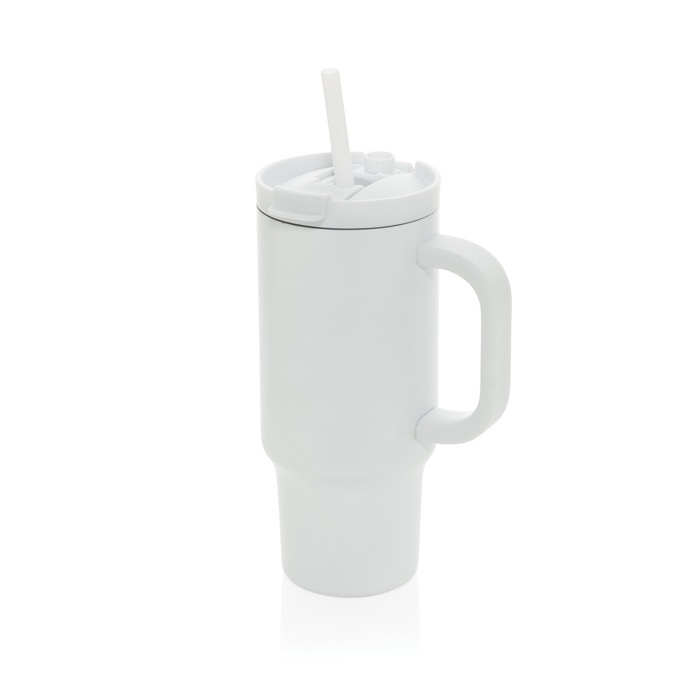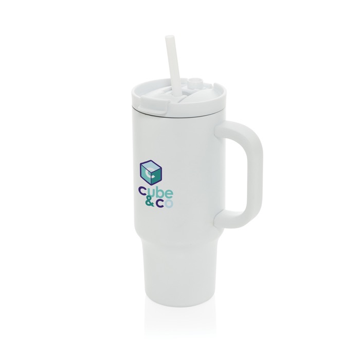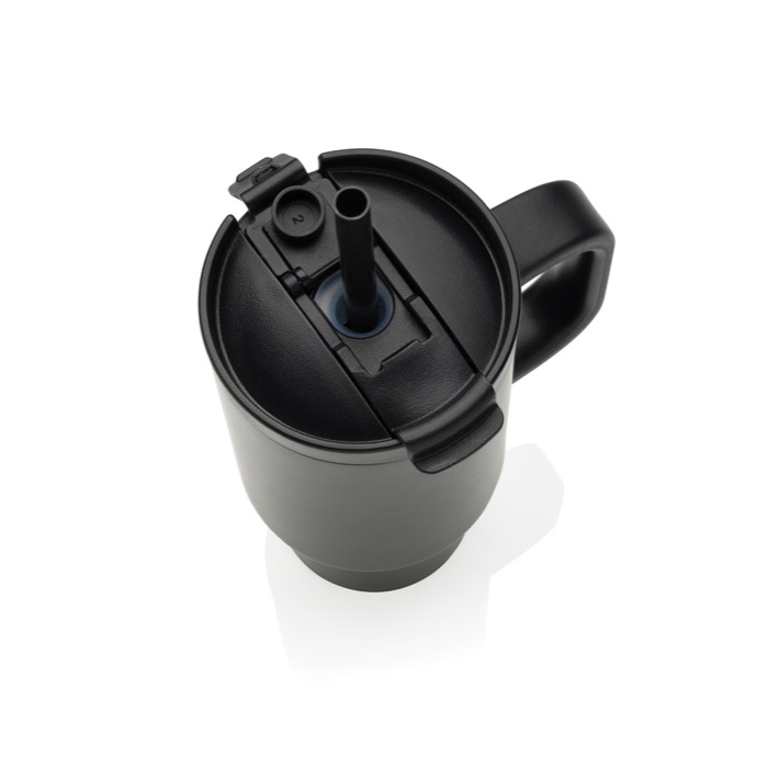 Thermobeker van gerecycled RVS met rietje en handvat 480 ml
