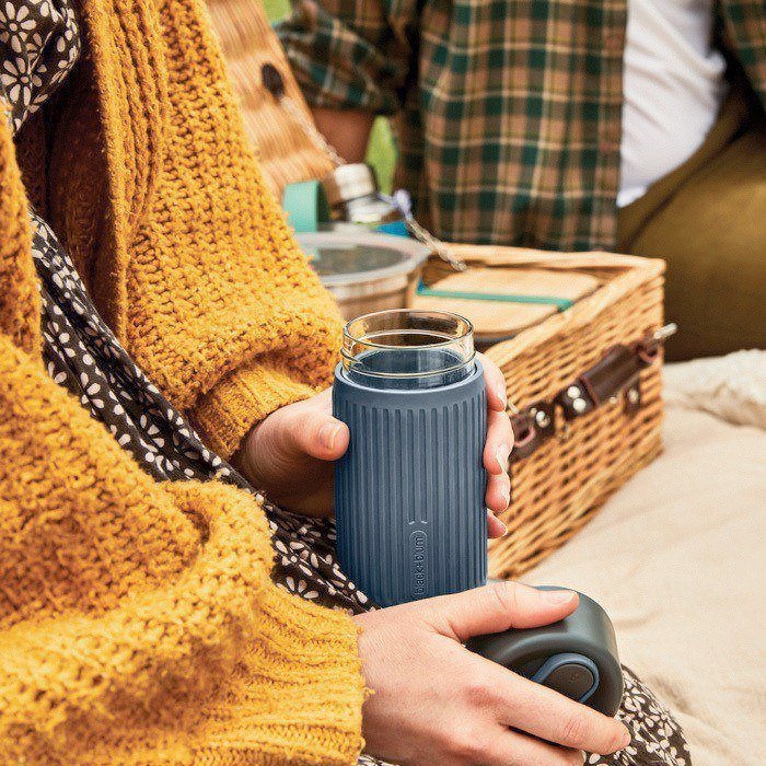 Thermische glazen reisbeker met siliconen hoes Black & Blum 340 ml