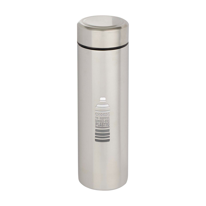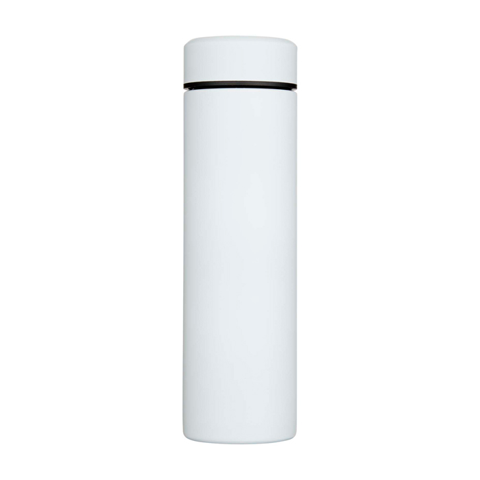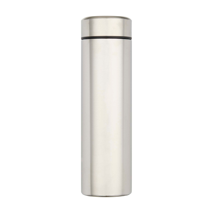 Dubbelwandige roestvrijstalen thermos met isolatie, ontworpen om dranken langer op de gewenste temperatuur te houden. Met een uitneembare theefilter. Zo maak je eenvoudig infusies zonder resten en is schoonmaken makkelijker. De lekvrije sluiting helpt morsen in een rugzak of aktetas te voorkomen. Het formaat is gemaakt voor dagelijks gebruik en onderweg. Inhoud 450 ml voor koffie, thee of water op kantoor, bij events en merkacties met logo.