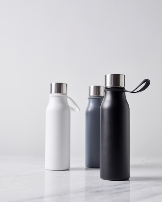 Een gecoate roestvrijstalen thermosfles passend bij de Lean waterfles, uit dezelfde serie. Door de lus aan de dop kan de isoleerfles eenvoudig aan een (rug)tas vastgemaakt worden en dankzij zijn vorm past hij in de meeste bekerhouders van auto’s. Geschikt voor zowel warme als koude dranken, die beide lang op temperatuur gehouden moeten worden. Eenvoudig schoon te maken met de hand.