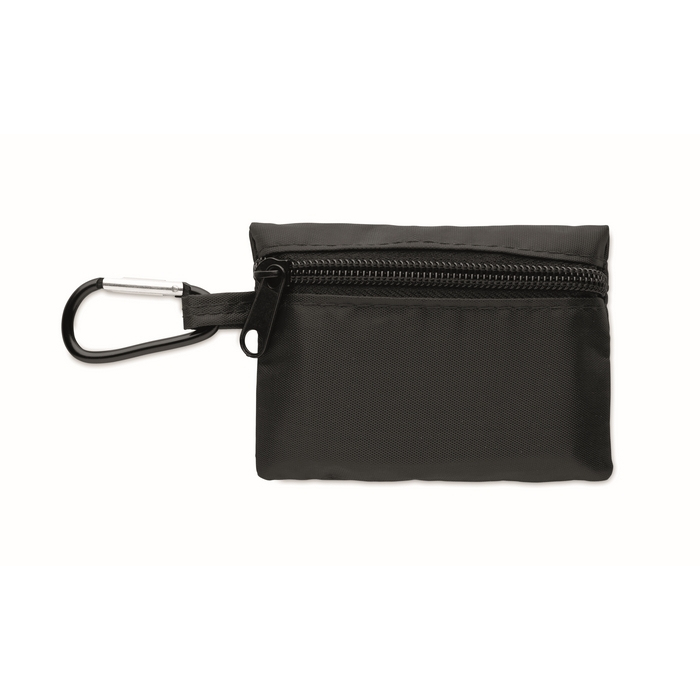 Compacte EHBO-set in RPET-tasje met aluminium karabijnhaak
