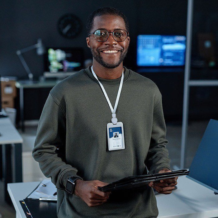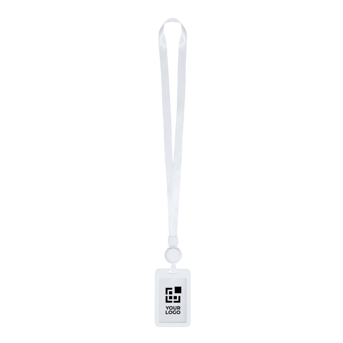 Witte polyester lanyard met uittrekbare badgehouder en afneembare kunststof kaarthouder. Inclusief hoes met ondoorzichtige achterkant en doorzichtige voorkant zodat je pas zichtbaar blijft, plus een clip om hem snel vast te maken. Het uitschuifkoord gaat tot 70 cm. Zo kun je makkelijk bij poortjes, balies of lezers zonder je badge af te doen. Een praktische oplossing voor toegangscontrole, ontvangst en badges op beurzen, congressen of in zakelijke omgevingen.