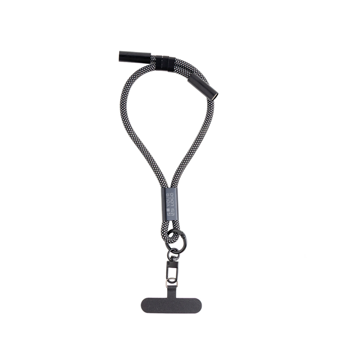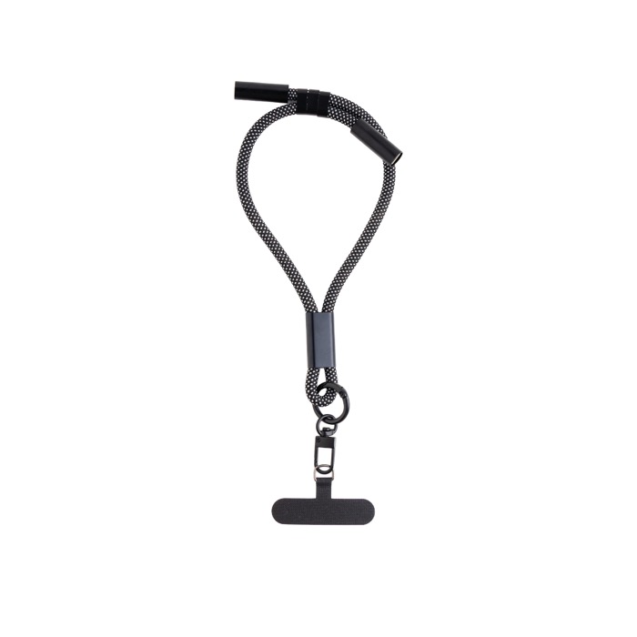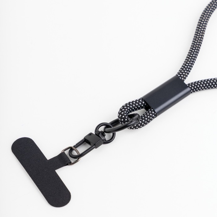 Profiteer van dual USB-C snelladen en houd je mobiel stijlvol bij de hand met deze robuuste pols-lanyard die design en praktische bruikbaarheid combineert.