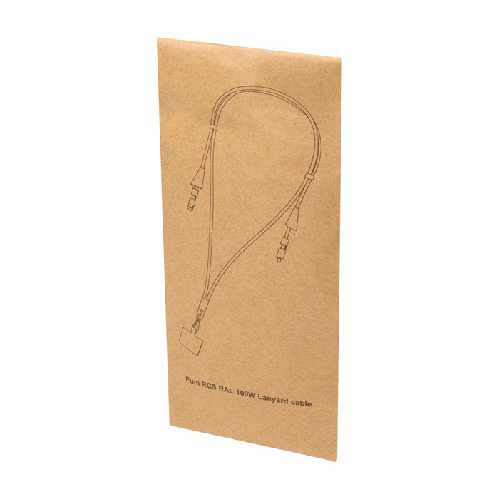 De Funi is een stijlvolle en praktische lanyard gemaakt van gerecycled plastic. Hij is voorzien van een ingebouwde 5-in-1 snellaad- en gegevenssynchronisatiekabel van 100 W met Type-C- en USB-A-ingangsconnectoren en Type-C-, Lightning- en microUSB-uitgang. Deze kabel is krachtig genoeg om de meeste laptops, tablets en smartphones snel op te laden. Compatibel met CarPlay en Android Auto waardoor hij perfect is voor op reis, op het werk of voor dagelijks gebruik.