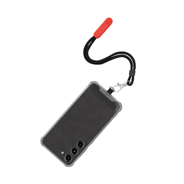 Verstelbare telefoonpolsband met karabijnhaak en standaard