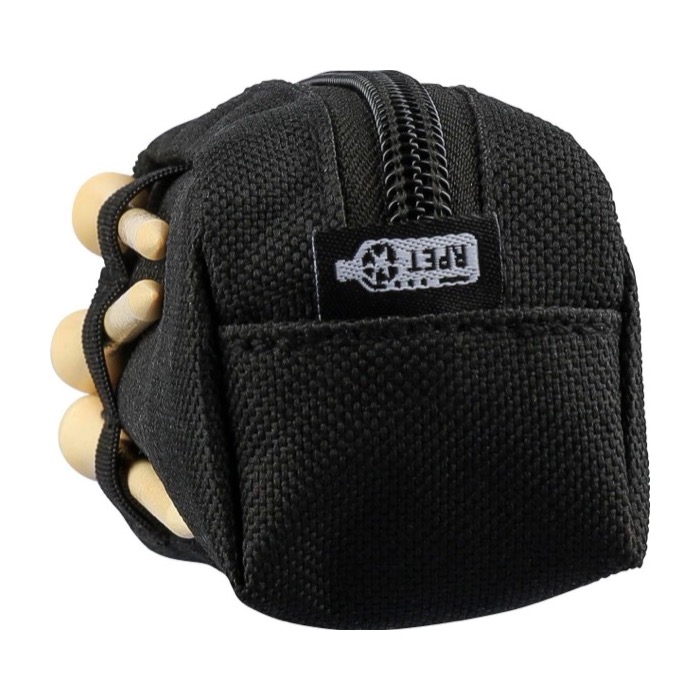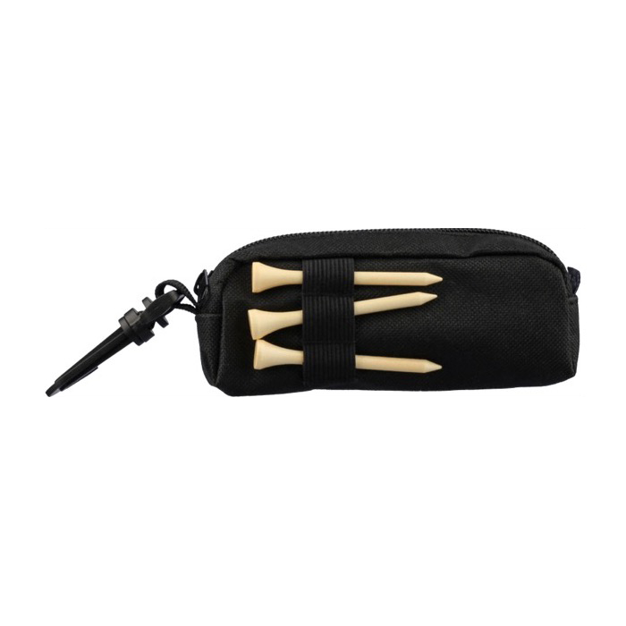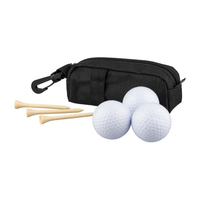 Golfset met etui van gerecycled plastic en ritssluiting. Je neemt het mee in de hand of hangt het op met de karabijnhaak. Inclusief 3 oefengolfballen en 3 tees van beukenhout. Een praktische combinatie voor snelle sessies en als reserve op de baan. Het etui heeft een inzet. Daardoor heb je net wat meer ruimte en kom je makkelijker bij de inhoud. Ideaal als giveaway bij bedrijfstoernooien of voor sportgerichte marketingacties.