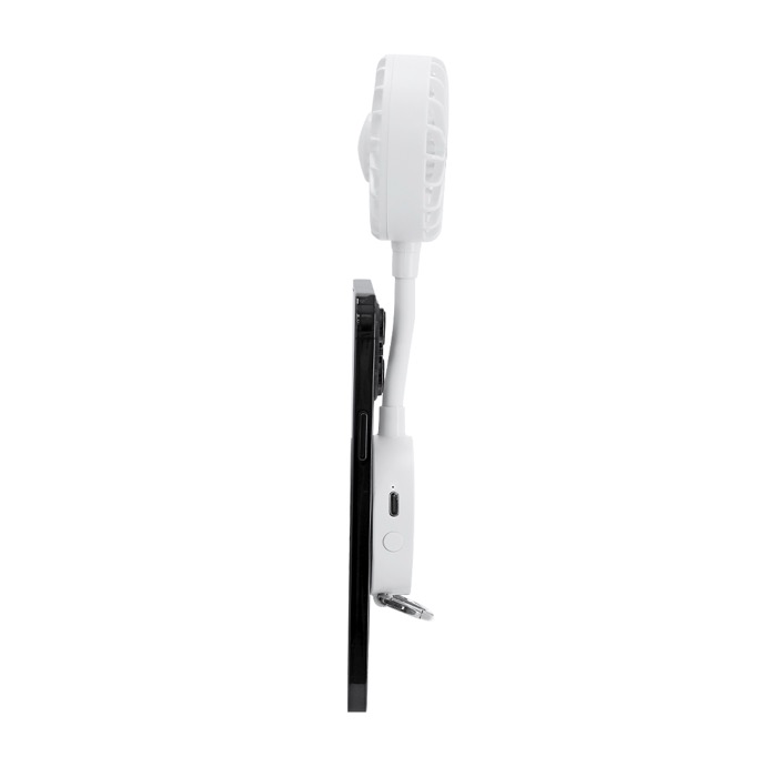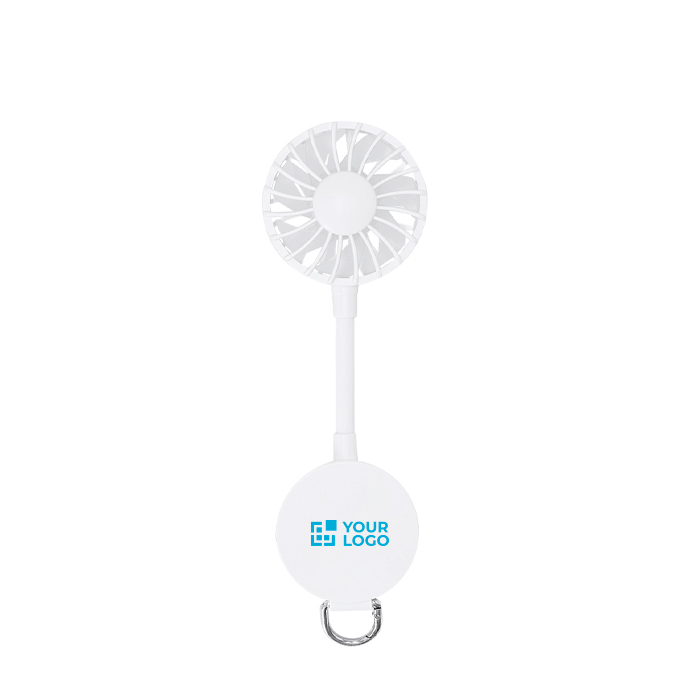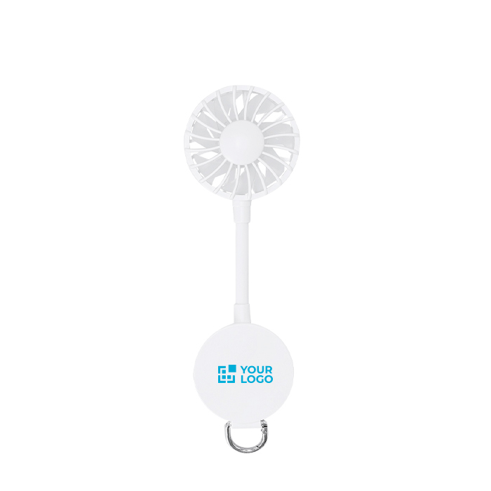 Multi-stand ventilator van kunststof in een effen kleur met 360°-rotatie en magnetische koppeling om snel op te vouwen en mee te nemen. Er zit een magneet in om hem aan je mobiel te bevestigen en een verstelbare standaard zodat je hem op tafel of in verschillende standen kunt plaatsen. Aan de onderkant zit een karabijnhaak en een metalen ring om hem aan te hangen. Je hebt 3 snelheden die je met een knop instelt. Opladen doe je met de bijpassende USB A-naar-USB C-kabel, met een batterij van 300mAh. Handig voor acties op events, op kantoor of voor zomercampagnes.