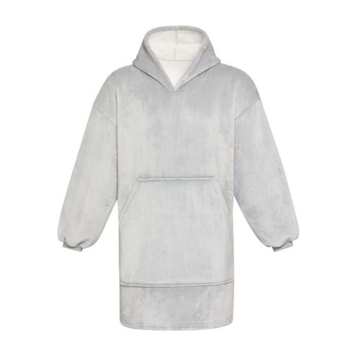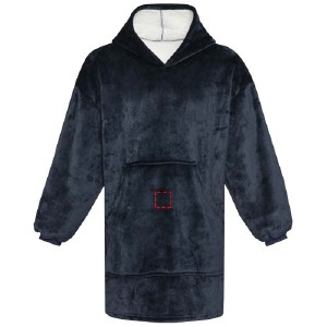 Gepersonaliseerde deken met capuchon van fleece en sherpa-voering. Ontwerp van groot formaat voor maximaal comfort. Met voorzak en GRS-certificering.