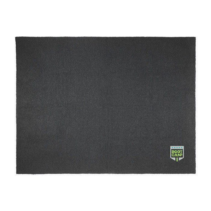 Gebreide deken van gerecycled polyester met label en lint