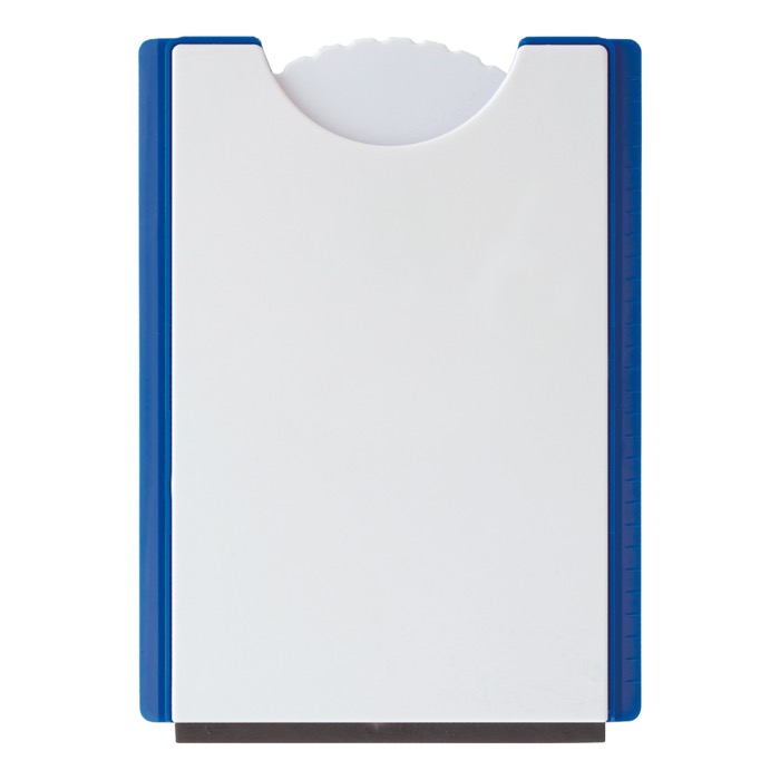 Dit promotionele artikel is een parkeerschijf gemaakt van hard plastic met gekartelde randen, waardoor het eveneens gebruikt kan worden als ijskrabber.