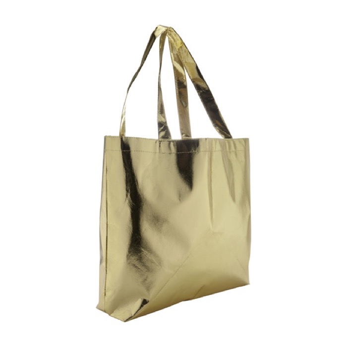 Non woven tassen bedrukken met logo en een metallic afwerking voor een chique twist. Deze non woven draagtassen perfect als relatiegeschenk.