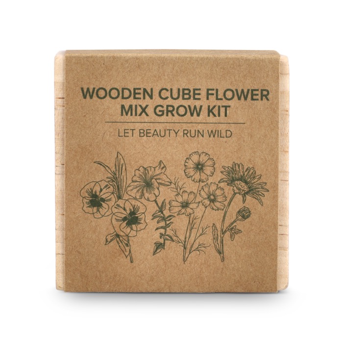 Zaaikit met potjes en substraat van kokosvezel om in een paar stappen een kleine bloemenkweek te starten. Inclusief geperste kokosvezelaarde en een mix van wildebloemenzaden zoals cosmos, coreopsis, viooltjes en klokjesbloemen. Eenvoudige en schone voorbereiding: maak het substraat vochtig, zaai en geef regelmatig water. Handig voor bureaus, recepties of gemeenschappelijke ruimtes. Een passende optie voor brandingacties op beurzen, onboarding of seizoenscampagnes.