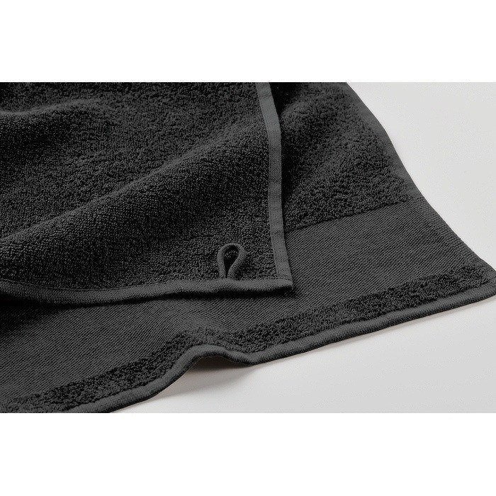 Badstof handdoek van 100% katoen, 380 g/m², geschikt voor dagelijks gebruik in professionele omgevingen. Goede absorptie en zachte textuur, ideaal voor toiletten op kantoor, hotels, sportscholen of evenementen. Voorzien van katoenen ophanglus voor eenvoudig opbergen. Praktische optie voor welkomstkits of inrichting van faciliteiten.